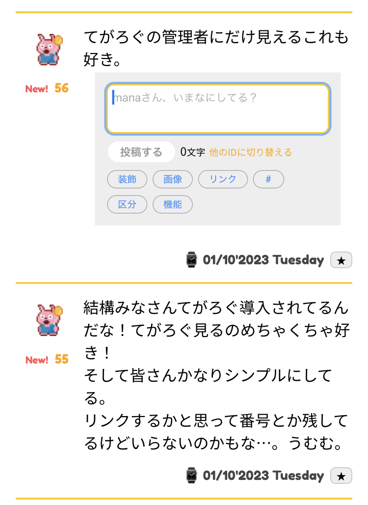 結構みなさんてがろぐ導入されてるんだな!てがろぐ見るのめちゃくちゃ好き!