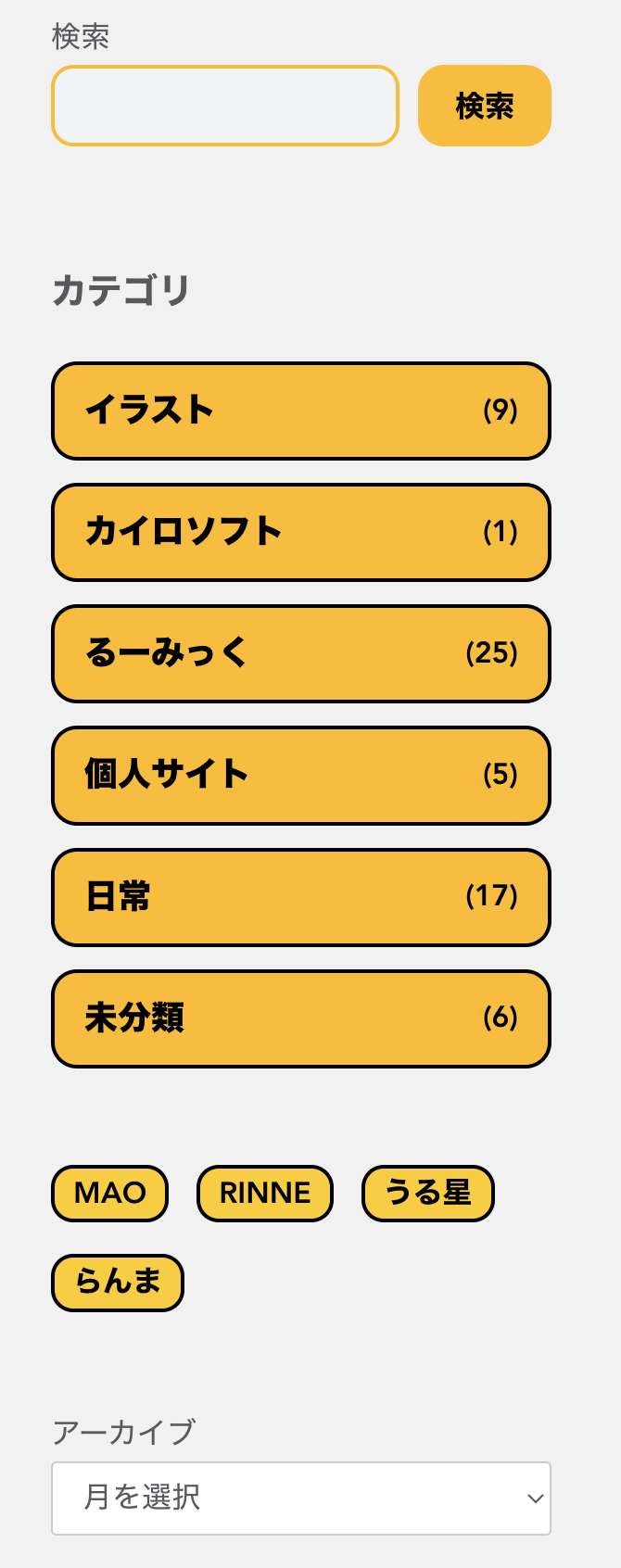 今までカテゴリを選ぶとカードじゃなくて記事が直接でてしまってたのでカードが出るようにしたのと、サイドバーの見た目をかわいくしました(当社比)!