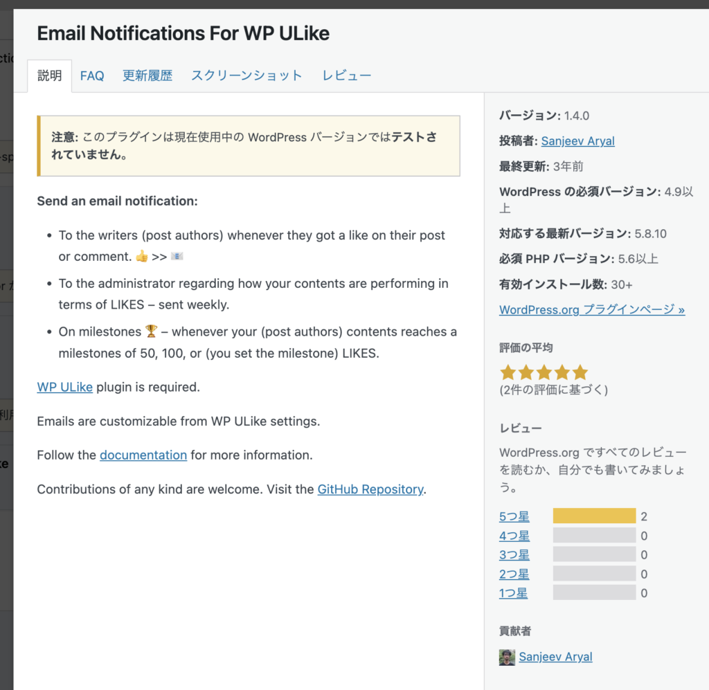 検索してみたらなんと「WP ULikeの通知をメールする」というプラグインがあることを発見。