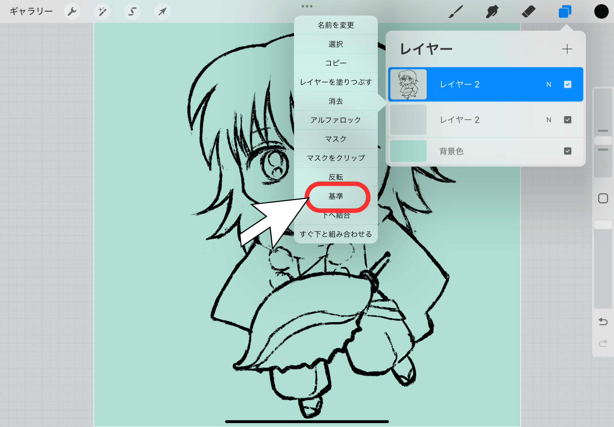 ▲線画レイヤーが「基準」ではないことを確認する。