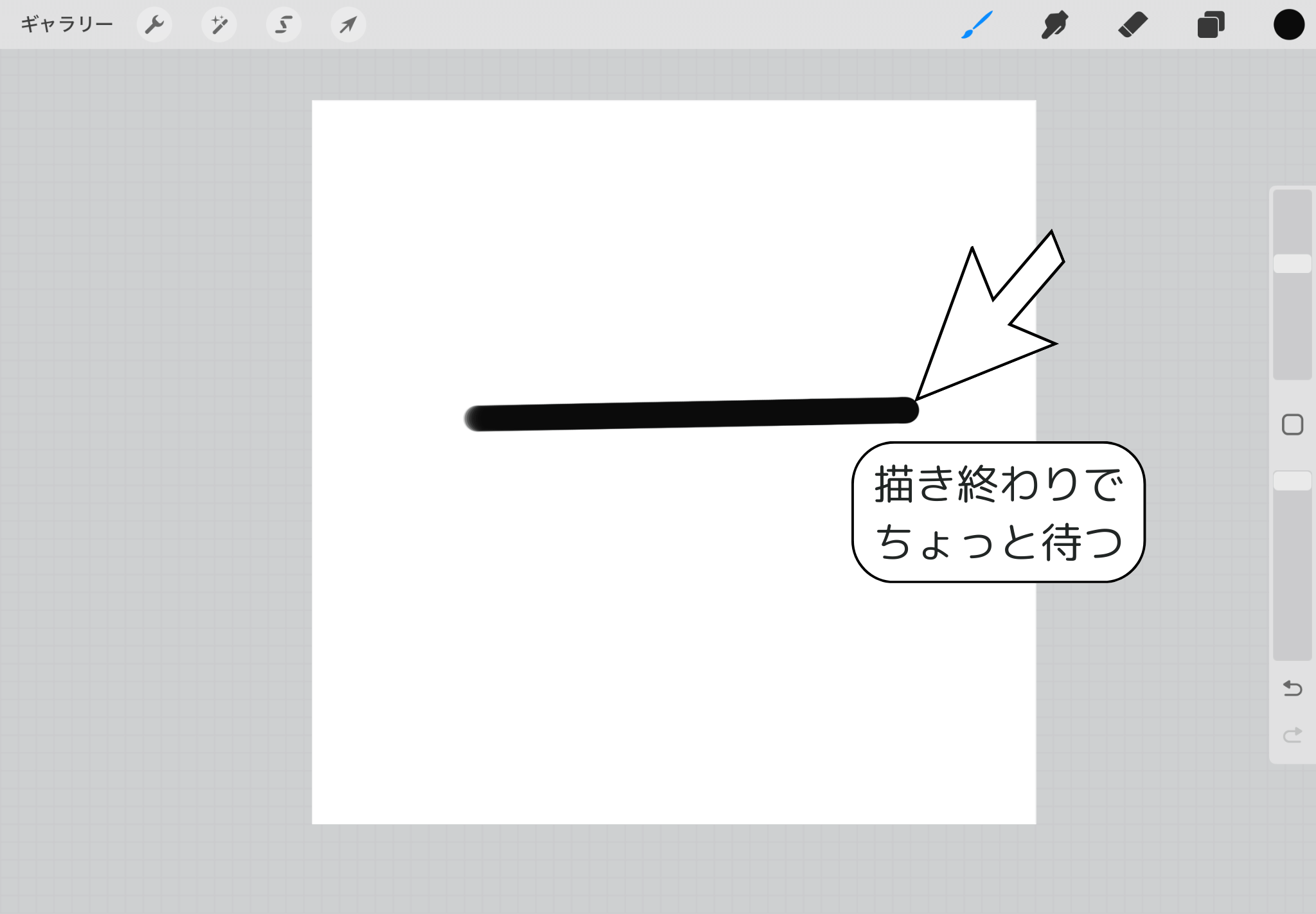 ▲描き終わりのところで押さえたままにすると、線が綺麗になります。