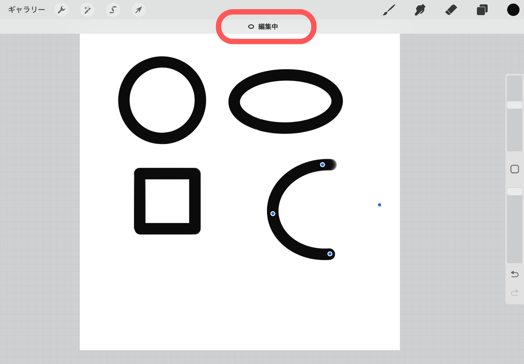 ※タップすると丸や四角が円や真四角に変化します。