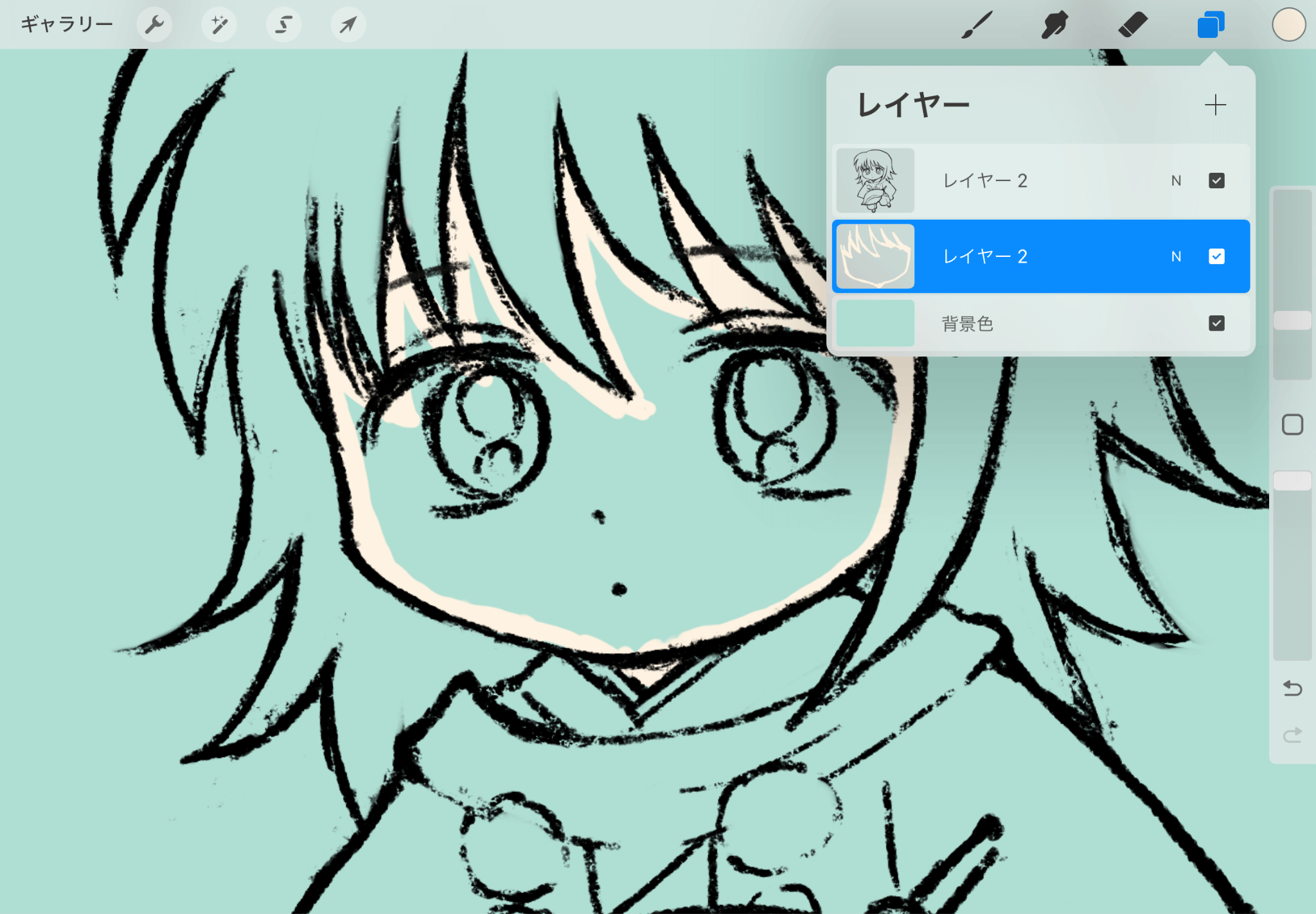 色塗り自体は新しいレイヤーにしたいので、「レイヤー2」を選択します。