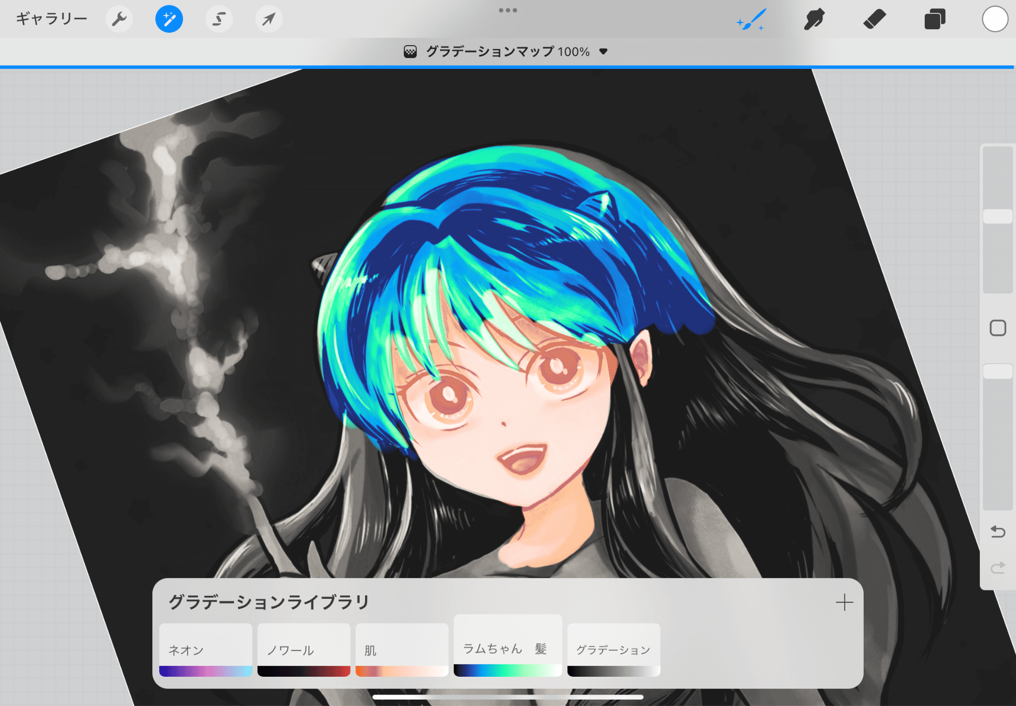 ▲その後、自作した「ラムちゃん 髪」のグラデーションマップで髪の毛を塗って見ました。
