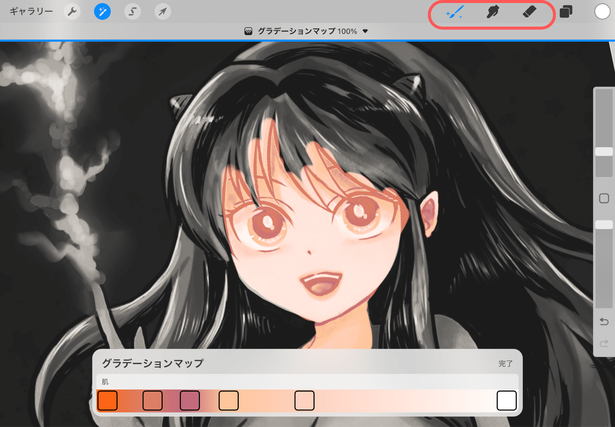 ▲グレースケールの絵じゃなくてもグラデーションマップを使用できます。