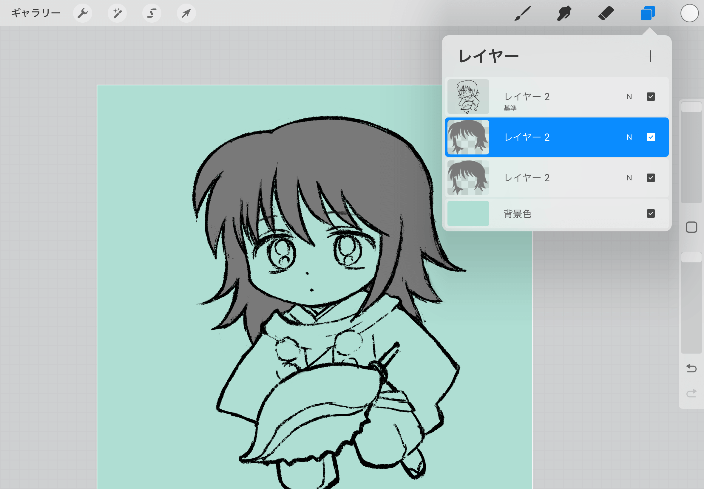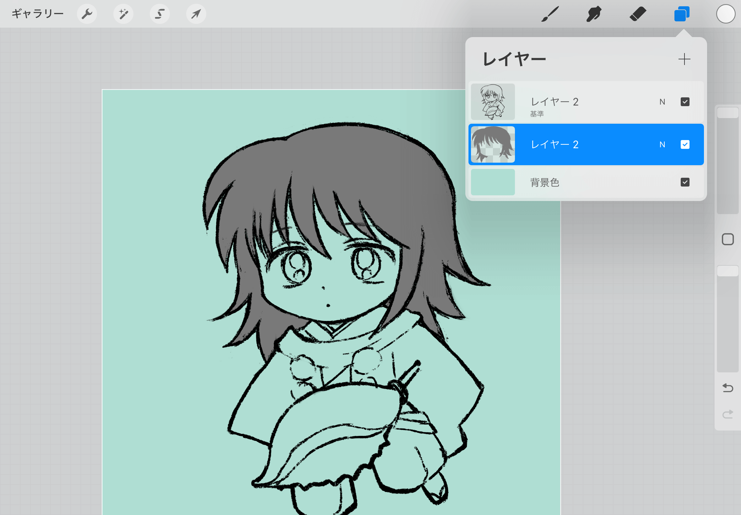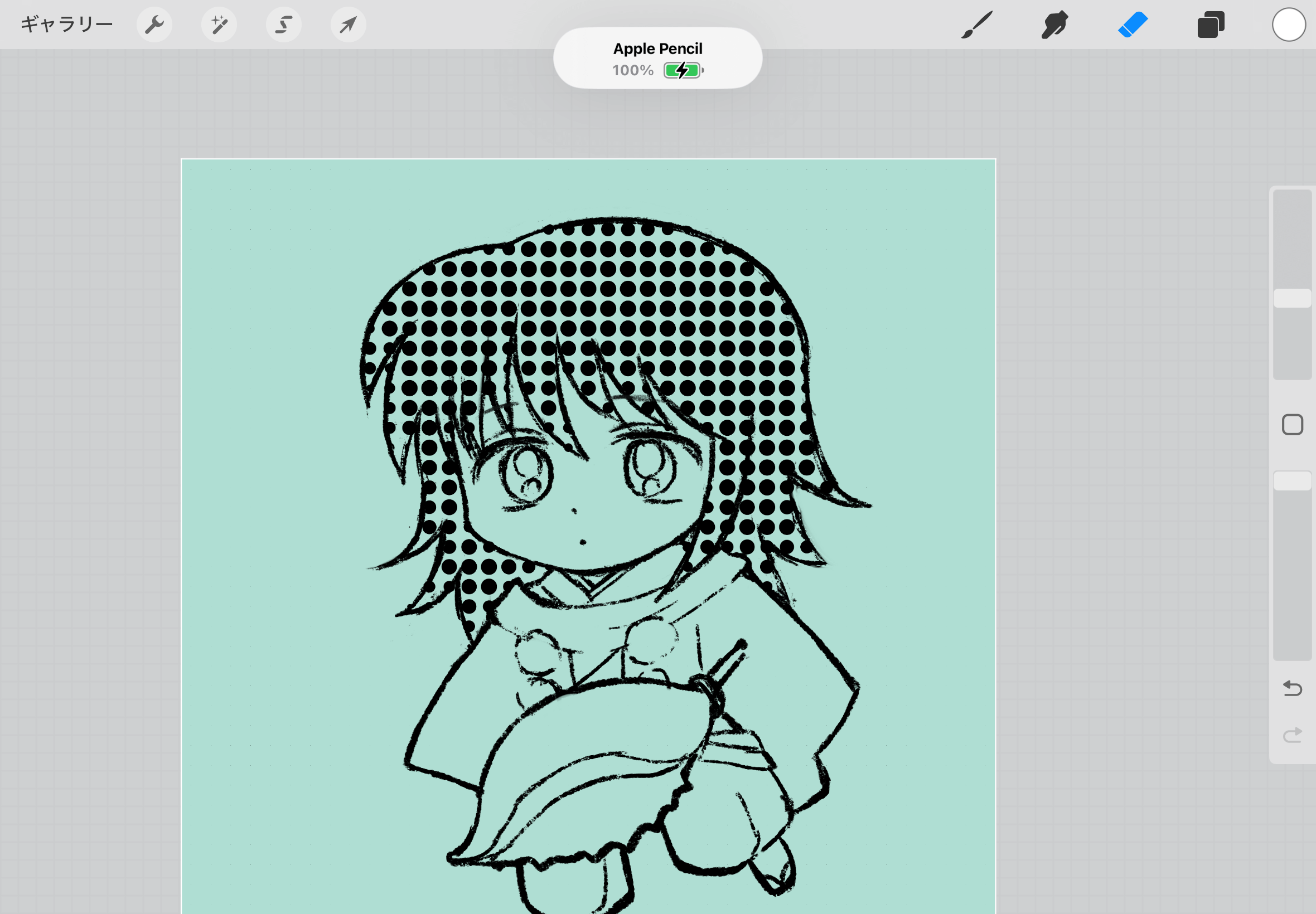 ▲「Penciil」にすると右上のブラシ、ぼかし、消しゴムを使用できます。