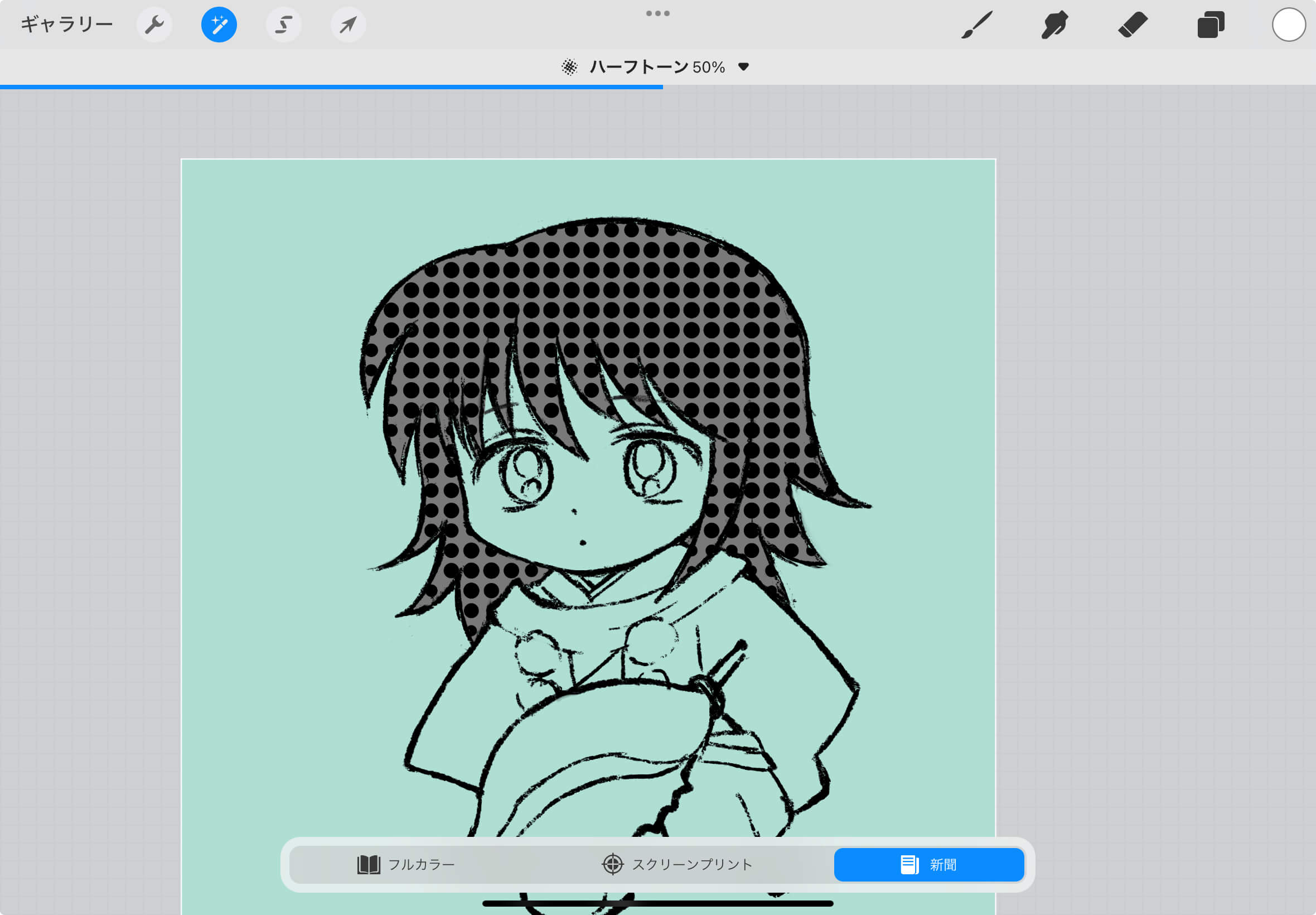 ▲「魔法のスティック」マークをクリックし、「ハーフトーン」を選びます。