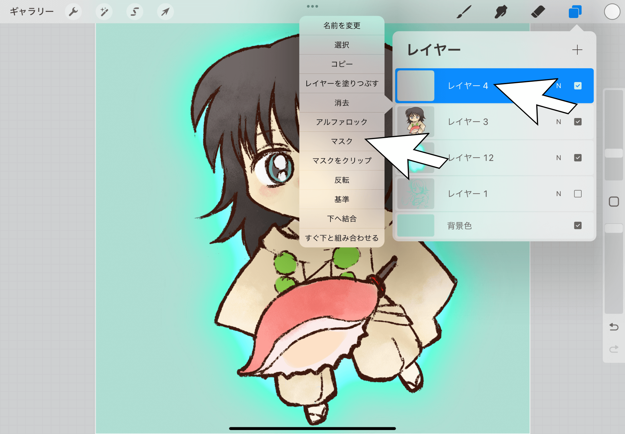 ▲新しくレイヤーを作り「マスク」をクリックします。